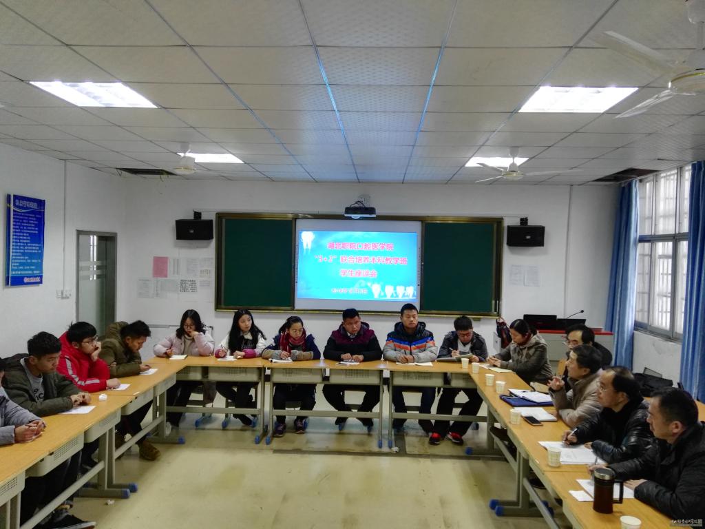 班主任叶芬老师首先讲话,她说联合本科班学生纪律性强、主动性好、知识接收能力强,班集体团结融洽,学习生活氛围良好,并对今后的班级管理提出了规划;随后学生代表对到我院后的学习和生活情况进行了汇报,对我院的学习环境、学生管理、实验实训条件感到满意,对任课老师的教学能力高度认可,同时提出了专本教学衔接、毕业学历、临床实习、学位授予和助理职业医师等方面的问题,在座的分管老师和领导一一做了解答。
