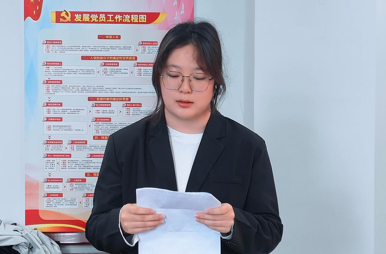 本次大会议程共八项,首先5名发展对象依次上台,面向全体党员庄严宣读《入党志愿书》,详细汇报了个人对党的认识、入党动机、个人履历、家庭及社会关系等情况,并深刻剖析了自身不足与未来努力方向,表达了加入中国共产党的坚定决心。