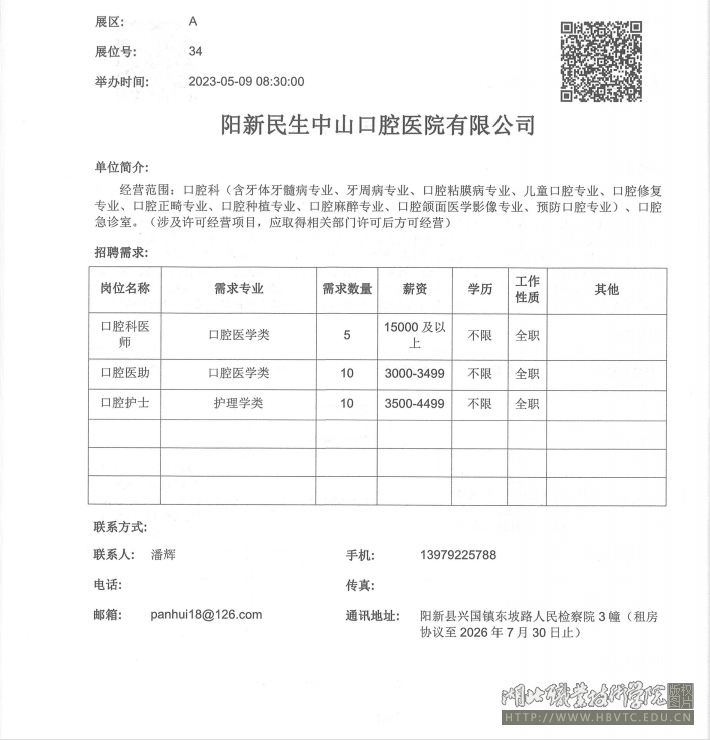 阳新民生中山口腔医院有限公司2023年招聘信息