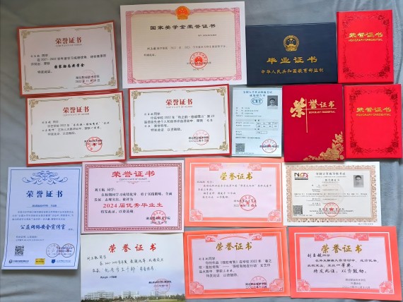 除此之外,我还积极参与校内外开展的各类活动,在老师和同学的帮助下取得了一定成就,在这里特别要感谢周建平院长和叶华新老师。例如“金话筒”主持人大赛一等奖;外语朗读大赛一等奖;“华星光电杯”求职大赛二等奖;在“全国大学生网络安全意识教育”活动,获得公益网络安全宣传官称号;“春之歌 强校有我”文艺作品大赛三等奖;第六届大学生创新创业大赛三等奖等。