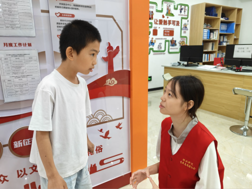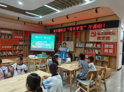在孩子们了解阅读种类后,一场精彩的故事分享会展开。孩子们兴致勃勃地向志愿者讲述熟知的神话故事,有的绘声绘色演绎女娲补天,有的激情洋溢讲述哪吒闹海,童言童语间,古老神话焕发新生机,现场洋溢着欢乐浓厚的文化氛围。