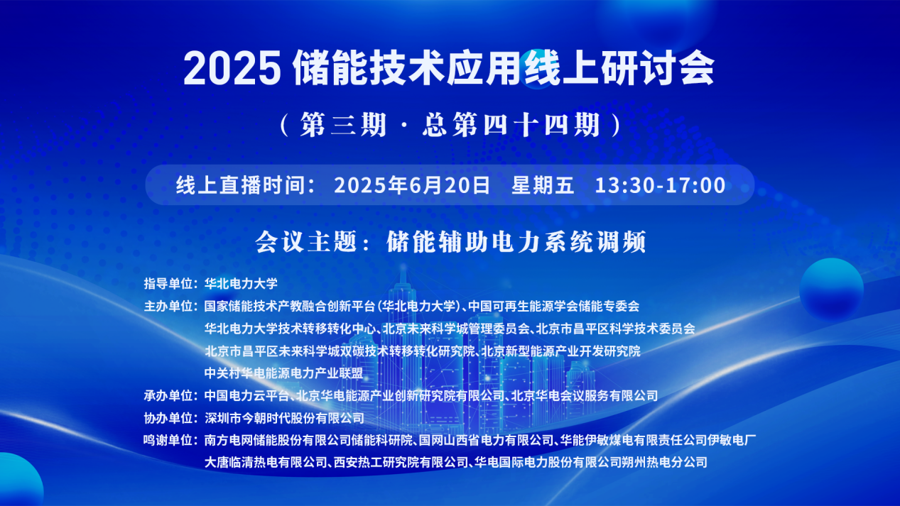 2025年储能技术应用线上研讨会(第三期·总第四十四期)【讲座主题】储能辅助电力系统调频 【讲座时间】6月 20 日 星期五 13:30-17:00 【讲座地点】https://t19c5.xetlk.com/sl/47dMIO 王航杰15321299518 1.【主讲人】韩文杰 南方电网储能股份有限...主讲人:韩文杰、赵俊屹、李卫东、姜楠、刘金标、寇水潮、李海强时间:2025-06-20 13:30地点:线上讲座 -