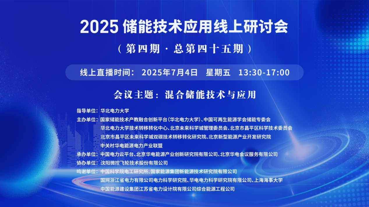 2025年储能技术应用线上研讨会(第四期·总第四十五期)【讲座主题】混合储能技术与应用 【讲座时间】7月4 日 星期五 13:30-17:00 【讲座地点】https://t19c5.mk.xet.citv.cn/sl/NJwrY 王航杰15321299518 1.【主讲人】尹靖元 中国科学院电工研究所研究部副主...主讲人:尹靖元、王智勇、苏新凯、鹿峪宁、李佳瑞、郭燚、陈哲时间:2025-07-04 13:30地点:线上讲座 -