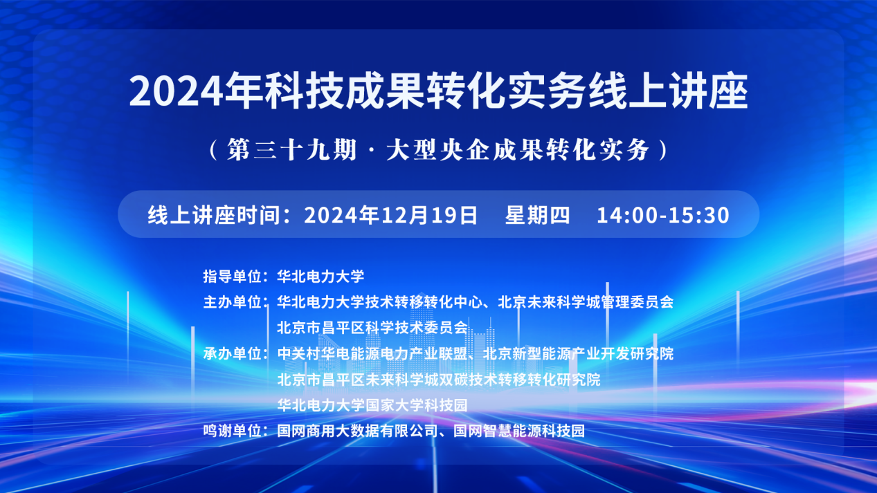 2024年科技成果转化实务线上讲座(第三十九期)【讲座主题】大型央企成果转化实务 【讲座时间】12月19日 【讲座地点】https://wlwth.xetlk.com/sl/3aaPla 联系人:吴燃 17310277950 【主讲人】 罗鹏 国网商用大数据公司(数字技术研究院)书记,兼任国网智慧能源科技园董事长 【主讲人简介】 罗鹏,高...主讲人:罗鹏时间:2024-12-19 14:00地点:线上讲座 -